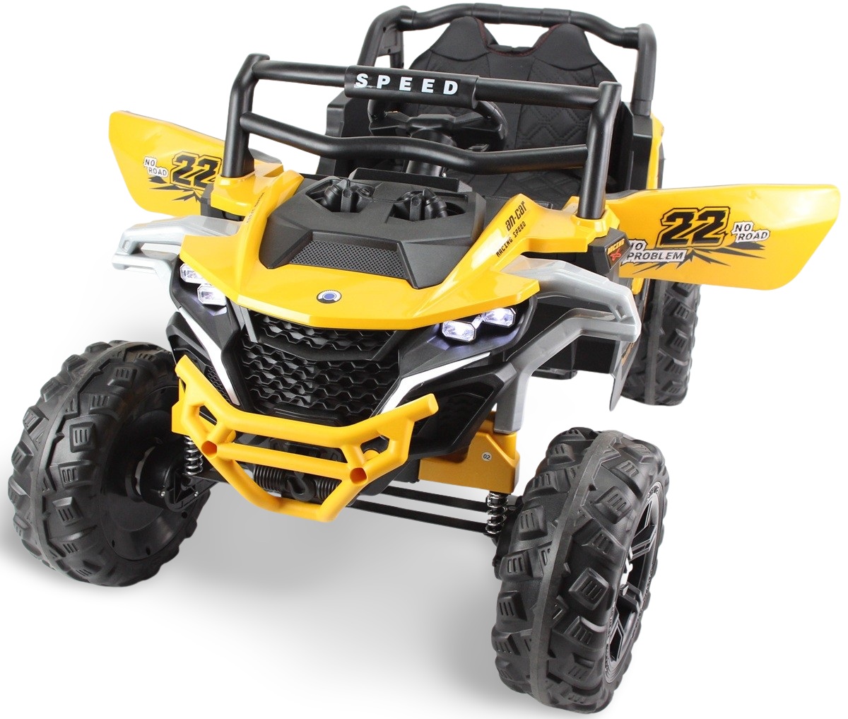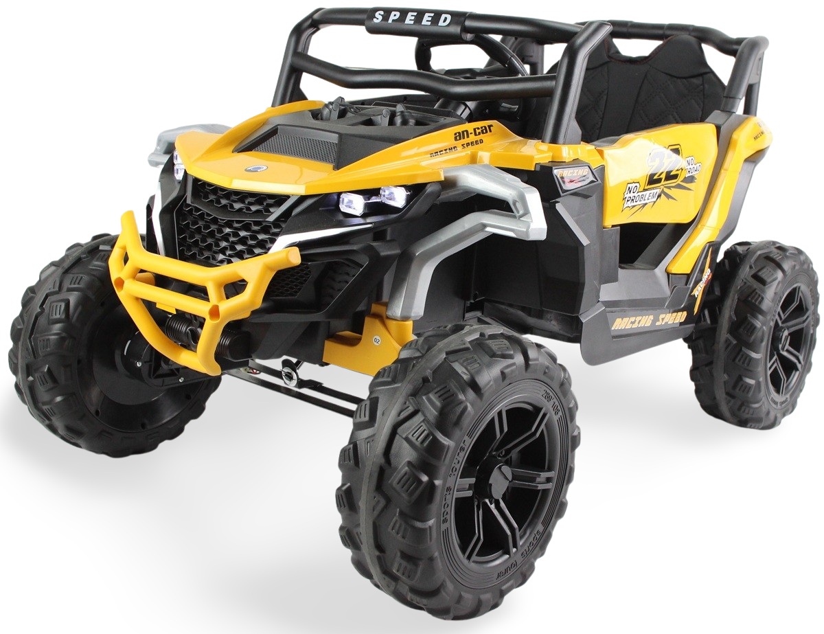 Nowy model, SUPER wyposażony. Amortyzatory na 4 kołach, 4 silniki napędowe - po 1 silniku na każde koło zapewniają komfort jazdy na nierównościach. Nowy system silników daje więcej mocy niż w standardowych pojazdach.