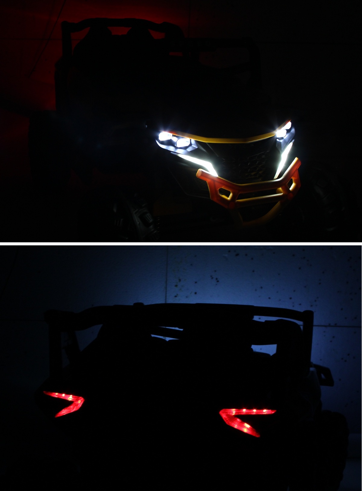 - swiatła świecą z przodu i tyłu pojazdu / włączane przyciskiem